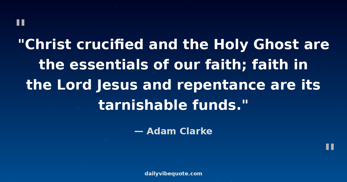 "Christ crucified and the Holy Ghost are the essentials of our faith; faith in the Lord Jesus and repentance are its tarnishable funds."