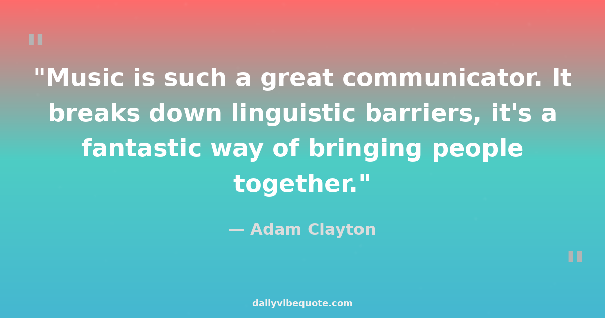 "Music is such a great communicator. It breaks down linguistic barriers, it's a fantastic way of bringing people together."