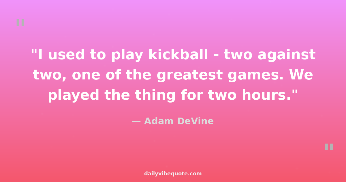 "I used to play kickball - two against two, one of the greatest games. We played the thing for two hours."