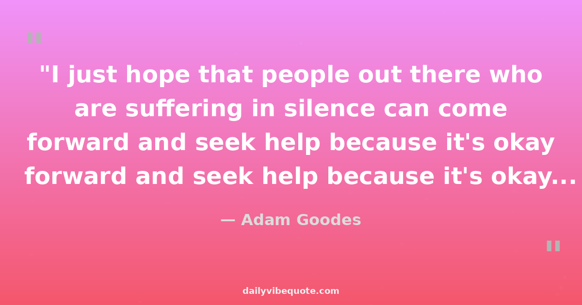 "I just hope that people out there who are suffering in silence can come forward and seek help because it's okay to talk about it. It doesn't make you weak. It just makes you human."