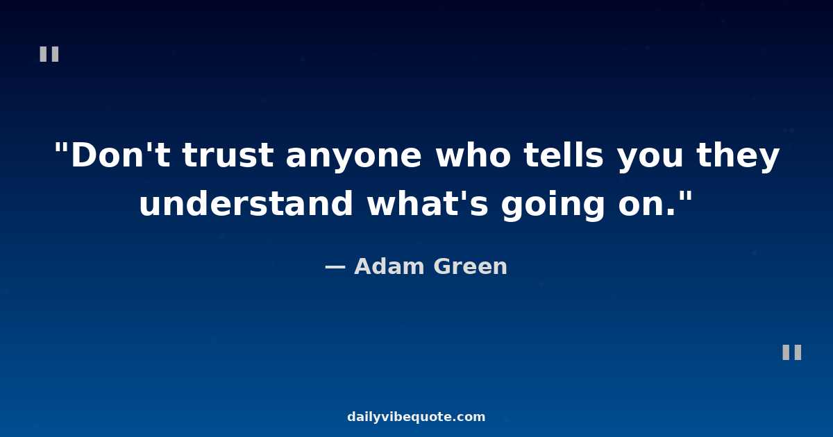 "Don't trust anyone who tells you they understand what's going on."