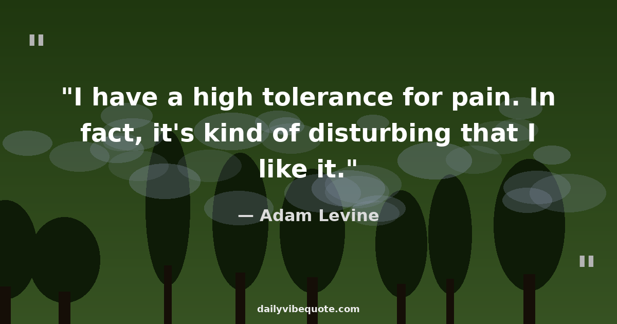 "I have a high tolerance for pain. In fact, it's kind of disturbing that I like it."