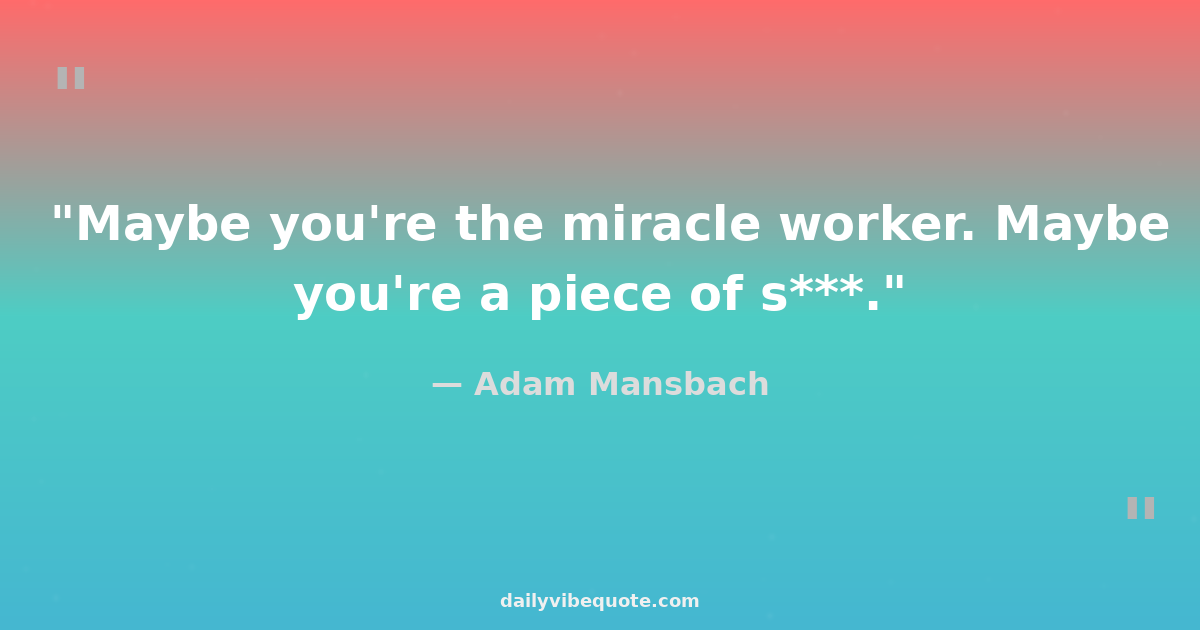 "Maybe you're the miracle worker. Maybe you're a piece of s***."