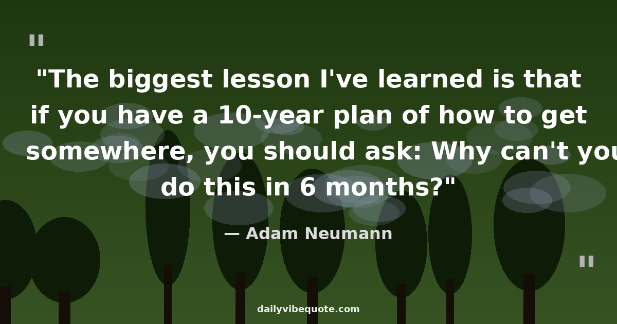 "The biggest lesson I've learned is that if you have a 10-year plan of how to get somewhere, you should ask: Why can't you do this in 6 months?"