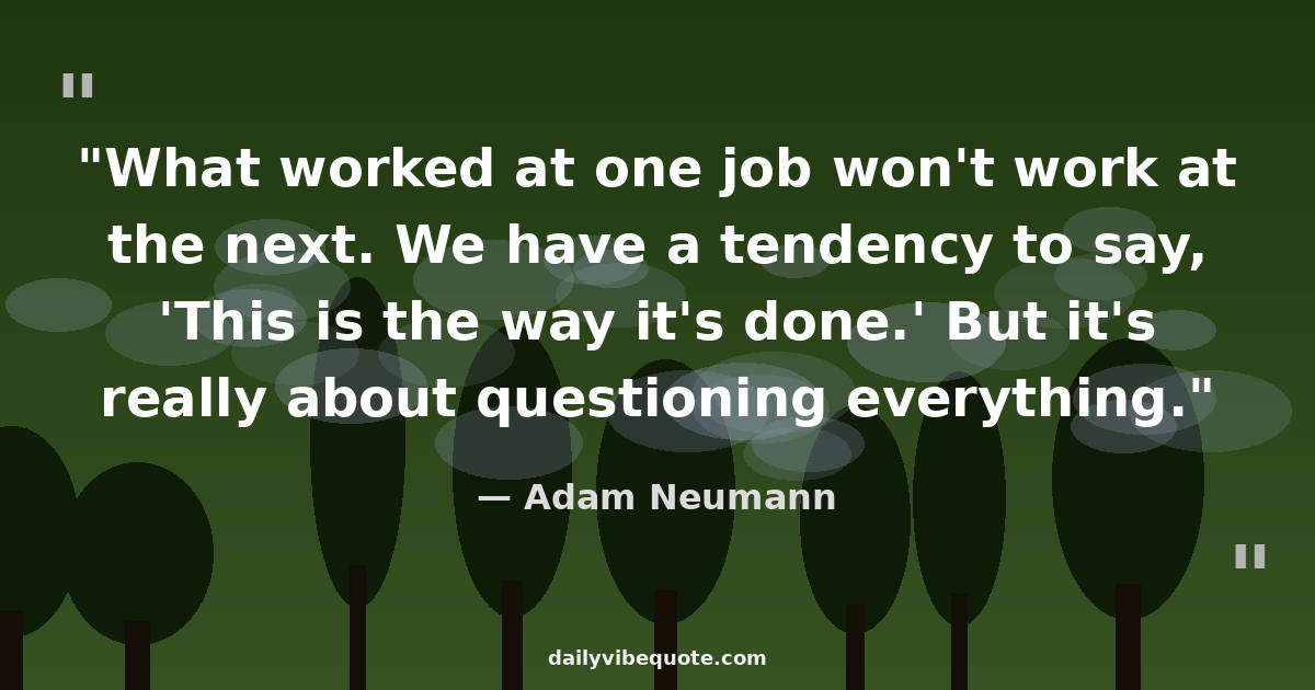 "What worked at one job won't work at the next. We have a tendency to say, 'This is the way it's done.' But it's really about questioning everything."