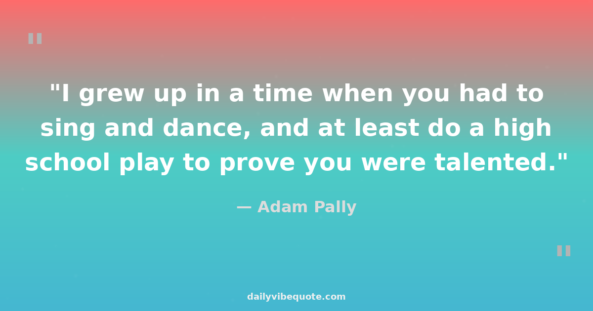 "I grew up in a time when you had to sing and dance, and at least do a high school play to prove you were talented."