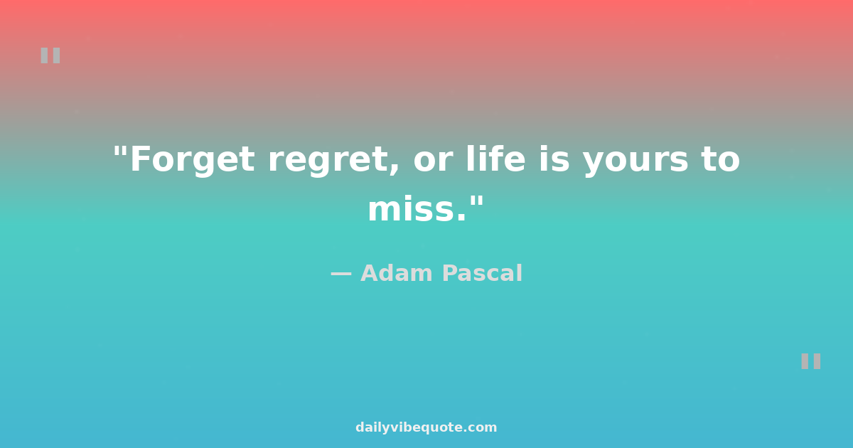"Forget regret, or life is yours to miss."