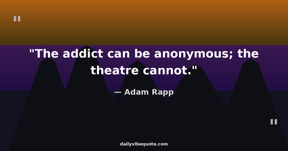 "The addict can be anonymous; the theatre cannot."
