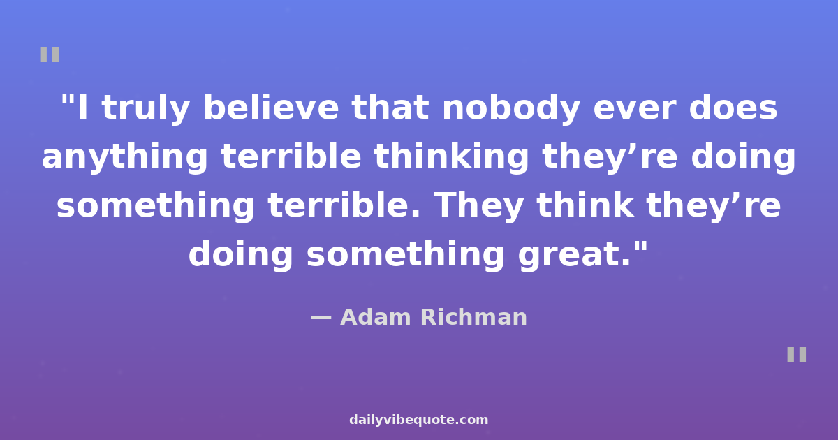"I truly believe that nobody ever does anything terrible thinking they’re doing something terrible. They think they’re doing something great."