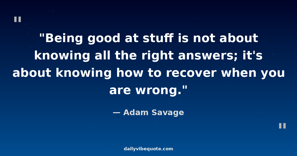 "Being good at stuff is not about knowing all the right answers; it's about knowing how to recover when you are wrong."