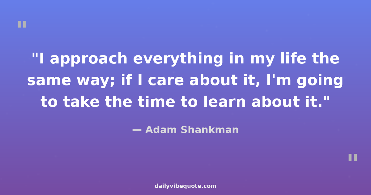 "I approach everything in my life the same way; if I care about it, I'm going to take the time to learn about it."