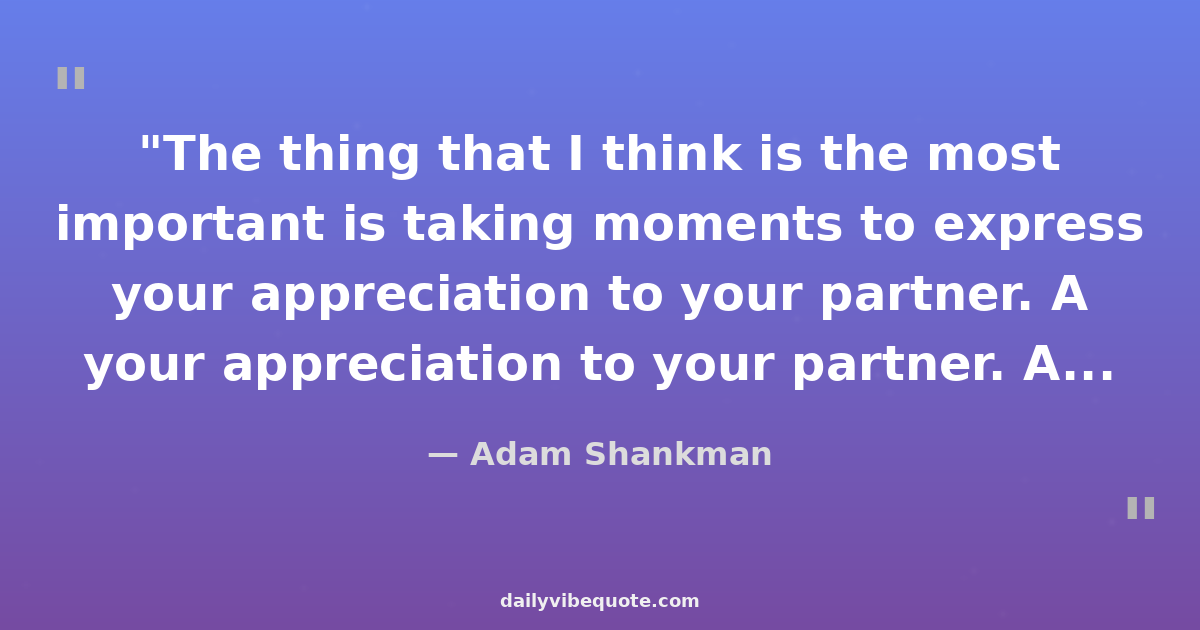 "The thing that I think is the most important is taking moments to express your appreciation to your partner. A thank you or a quick kiss can go a long way toward affirming your relationship and commitment to each other."