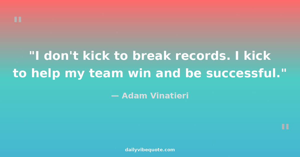 "I don't kick to break records. I kick to help my team win and be successful."