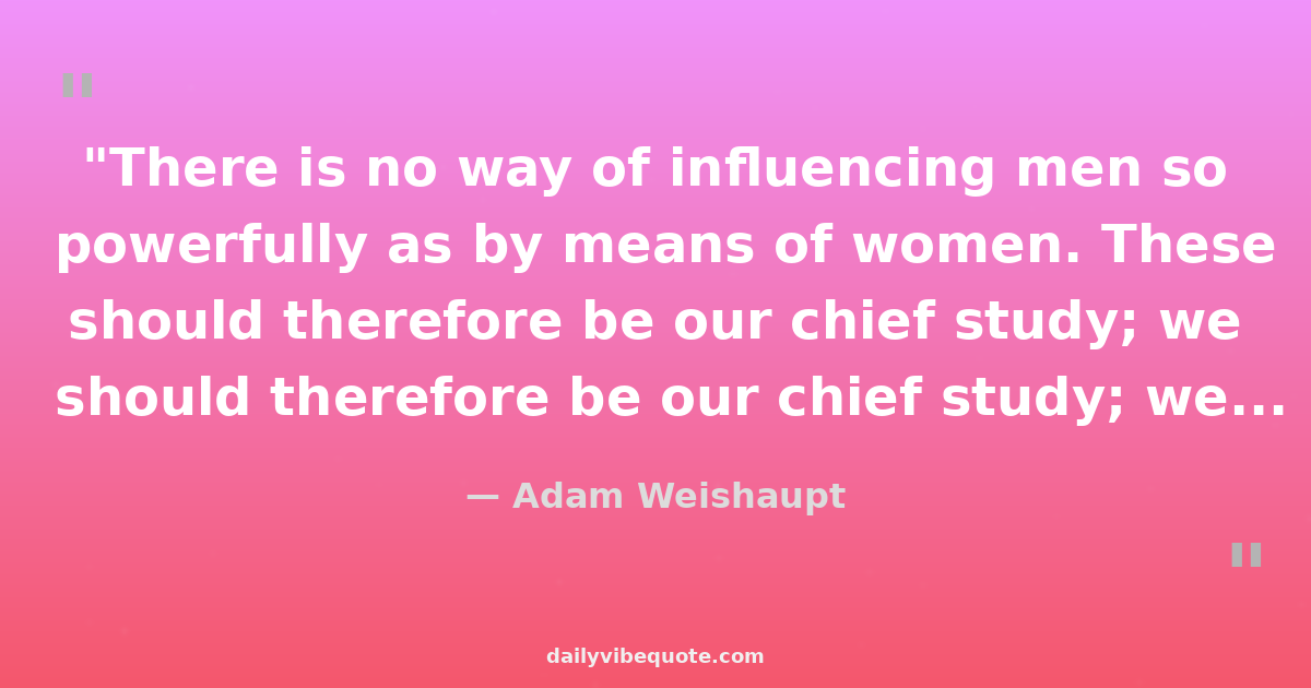 "There is no way of influencing men so powerfully as by means of women. These should therefore be our chief study; we should insinuate ourselves into their good opinion, give them hints of emancipation from the tyranny of public opinion, and of standing up for themselves; it will be an immense relief to their enslaved minds to be freed from any one bond of restraint, and it will fire them more, and cause them to work for us with zeal, without knowing that they do so; for they will only be indulging their own desire of personal admiration."