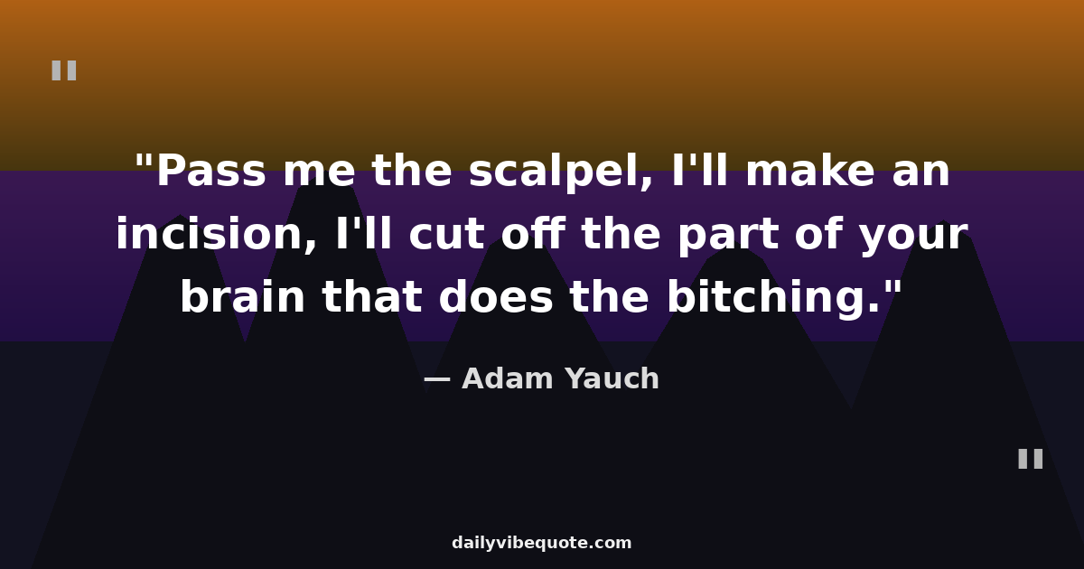 "Pass me the scalpel, I'll make an incision, I'll cut off the part of your brain that does the bitching."