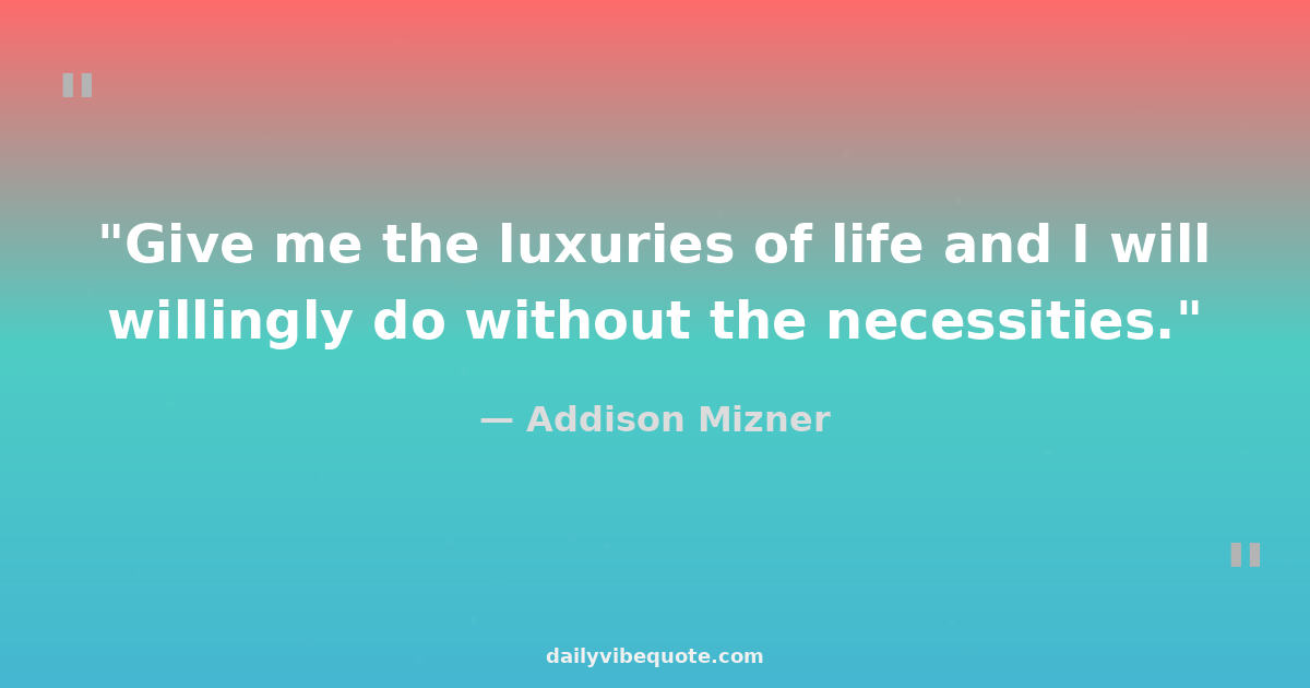 "Give me the luxuries of life and I will willingly do without the necessities."
