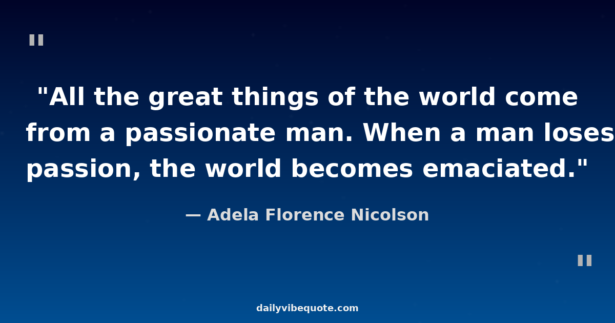 "All the great things of the world come from a passionate man. When a man loses passion, the world becomes emaciated."