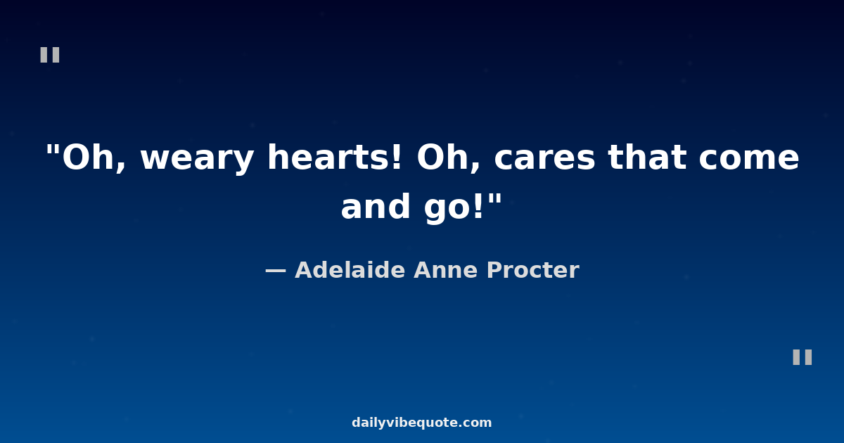 "Oh, weary hearts! Oh, cares that come and go!"
