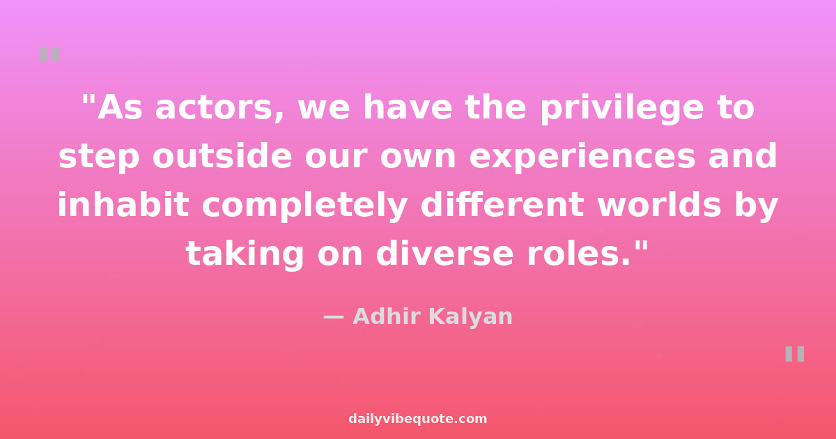 "As actors, we have the privilege to step outside our own experiences and inhabit completely different worlds by taking on diverse roles."