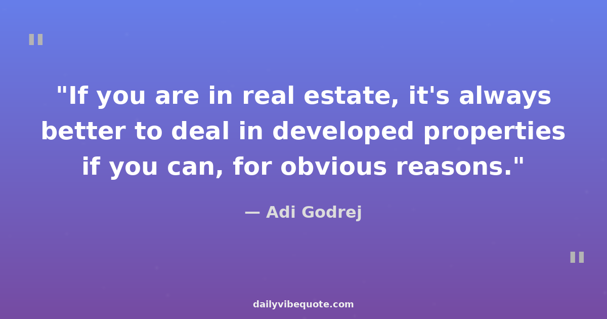 "If you are in real estate, it's always better to deal in developed properties if you can, for obvious reasons."