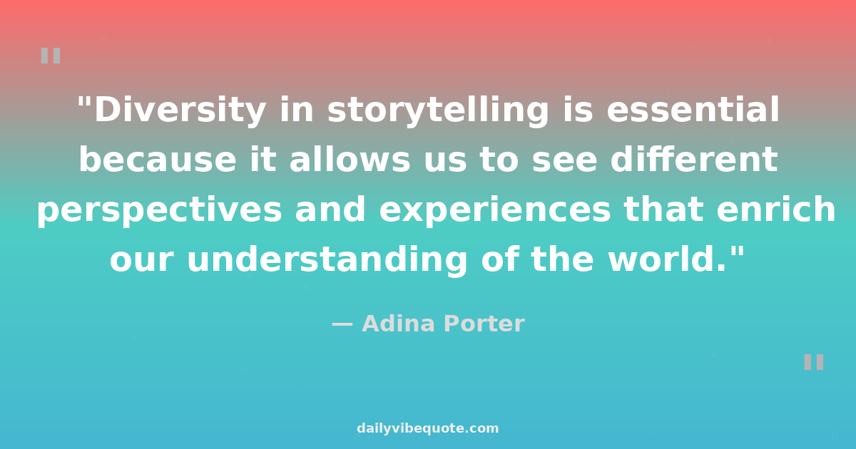"Diversity in storytelling is essential because it allows us to see different perspectives and experiences that enrich our understanding of the world."
