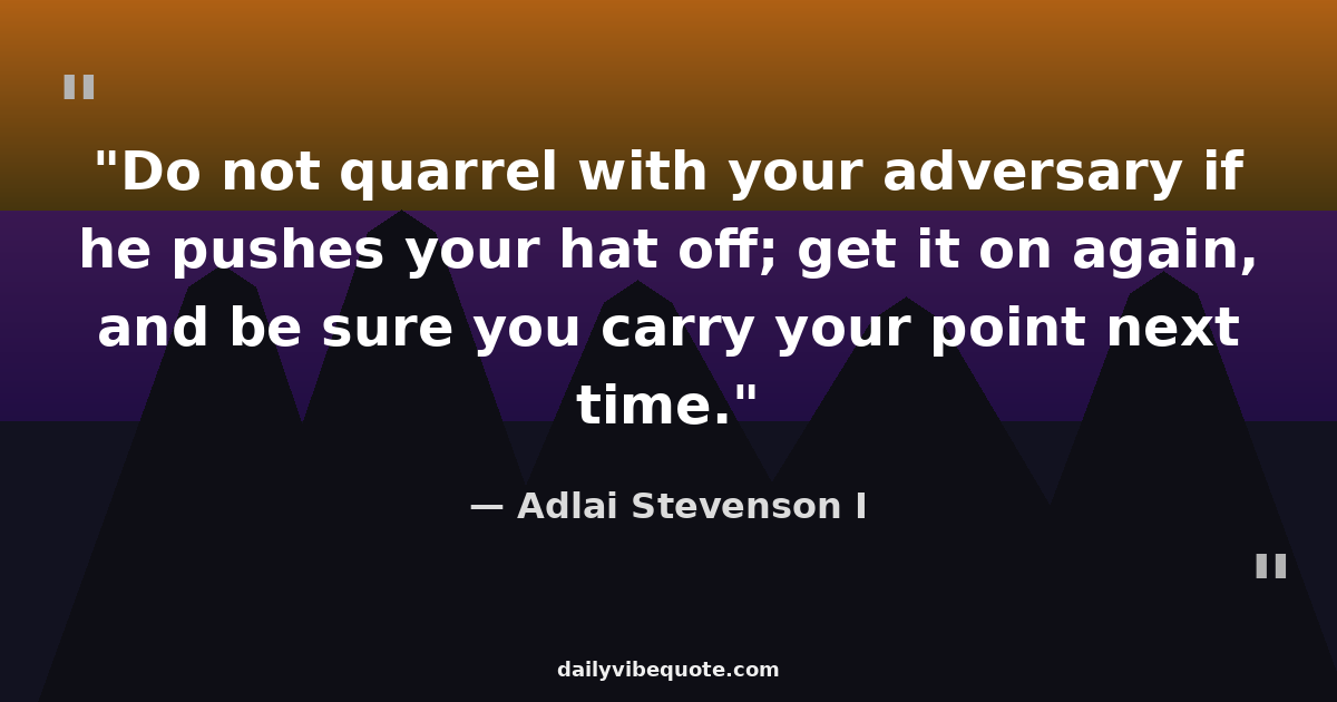 "Do not quarrel with your adversary if he pushes your hat off; get it on again, and be sure you carry your point next time."