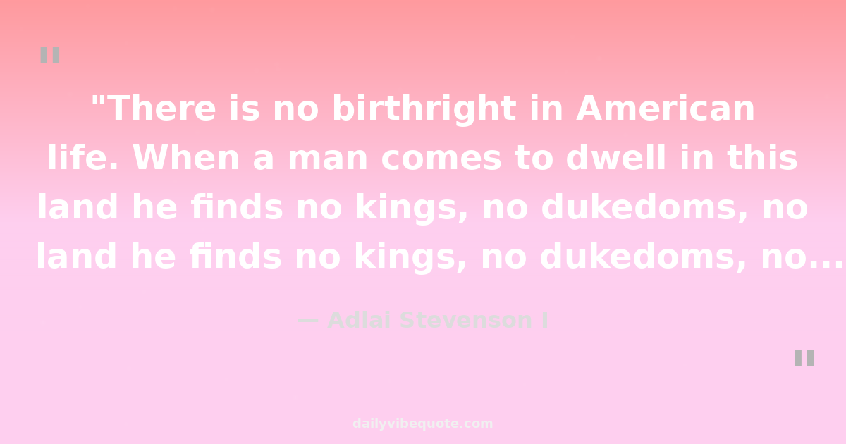 "There is no birthright in American life. When a man comes to dwell in this land he finds no kings, no dukedoms, no earls, no landed estates to which he is born – and for which he must shed his blood."