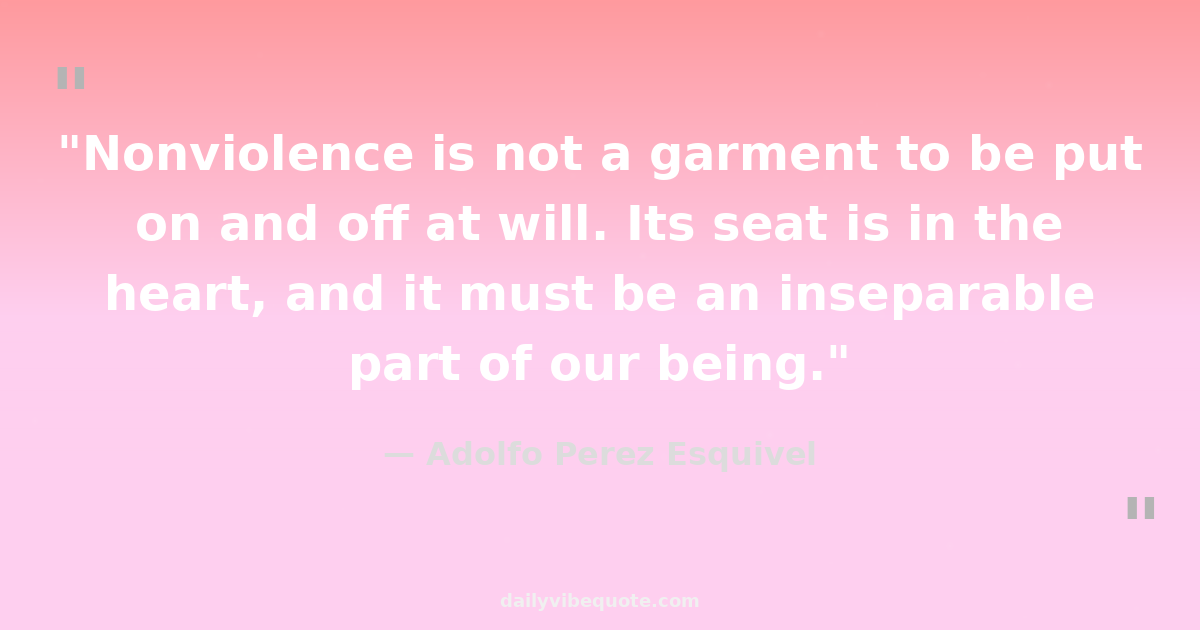 "Nonviolence is not a garment to be put on and off at will. Its seat is in the heart, and it must be an inseparable part of our being."