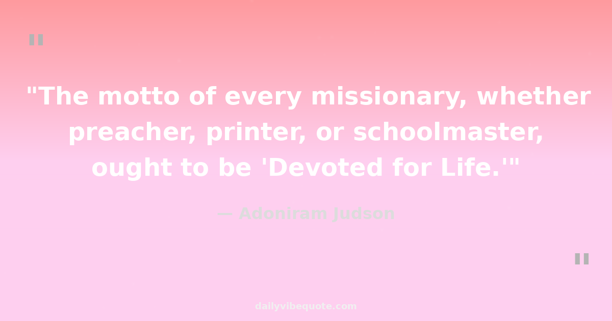 "The motto of every missionary, whether preacher, printer, or schoolmaster, ought to be 'Devoted for Life.'"