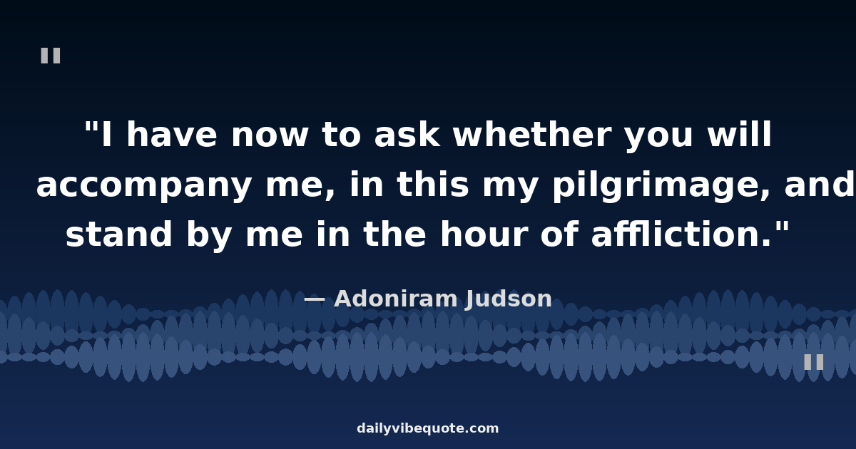 "I have now to ask whether you will accompany me, in this my pilgrimage, and stand by me in the hour of affliction."