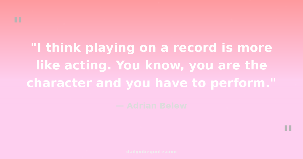 "I think playing on a record is more like acting. You know, you are the character and you have to perform."