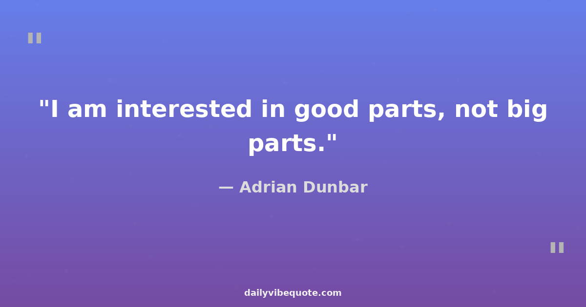 "I am interested in good parts, not big parts."
