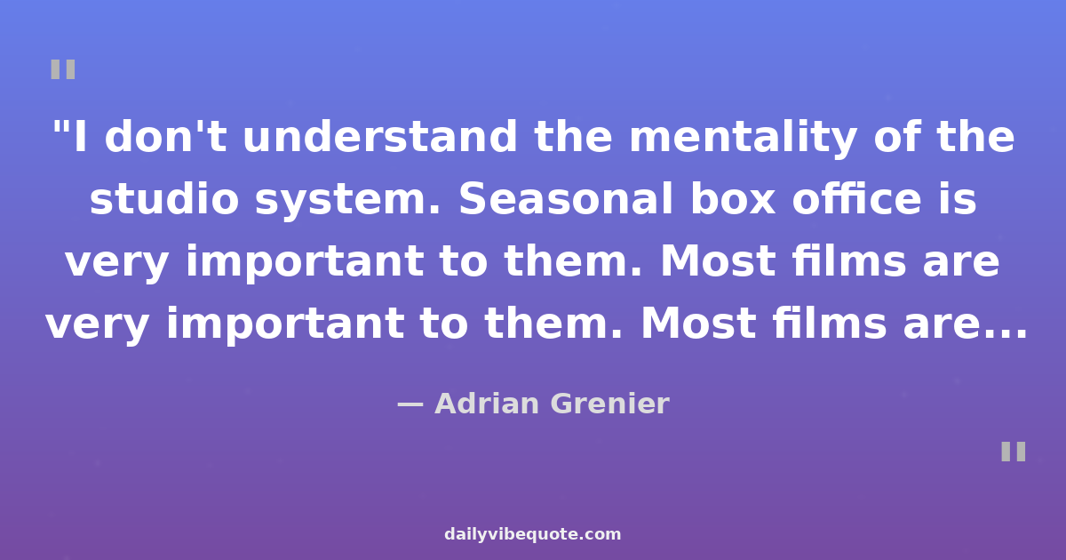 "I don't understand the mentality of the studio system. Seasonal box office is very important to them. Most films are not allowed to grow in the marketplace because the studios are afraid of losing the marquee during a certain time of year."