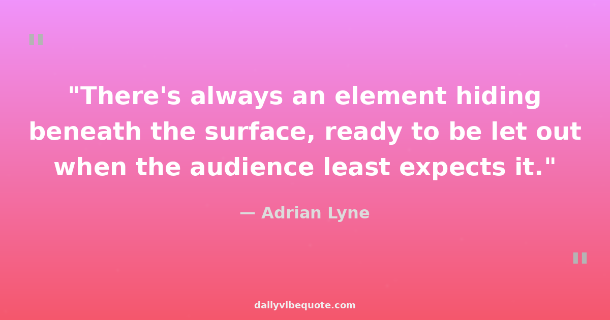 "There's always an element hiding beneath the surface, ready to be let out when the audience least expects it."
