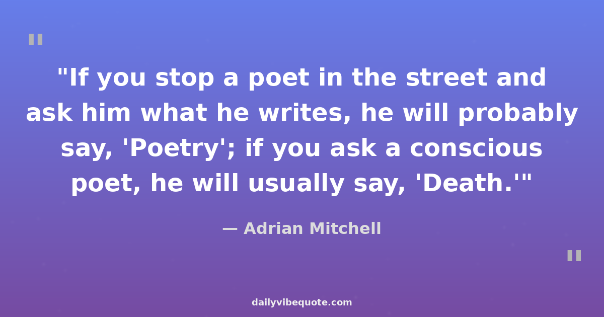 "If you stop a poet in the street and ask him what he writes, he will probably say, 'Poetry'; if you ask a conscious poet, he will usually say, 'Death.'"