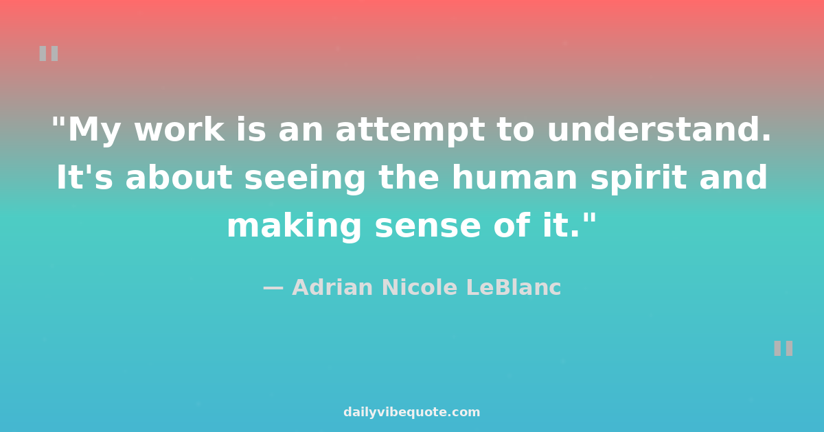 "My work is an attempt to understand. It's about seeing the human spirit and making sense of it."