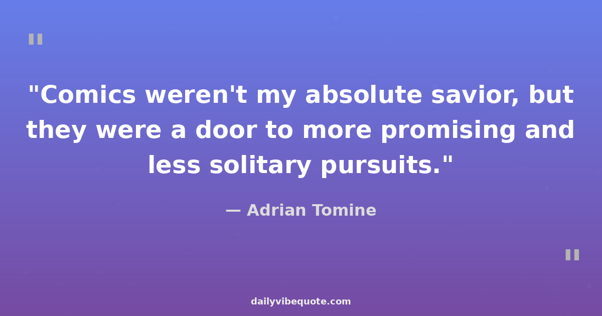 "Comics weren't my absolute savior, but they were a door to more promising and less solitary pursuits."
