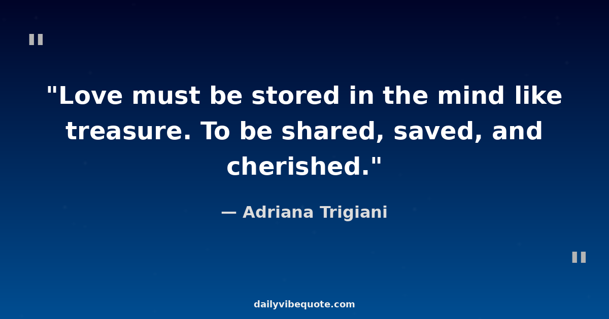 "Love must be stored in the mind like treasure. To be shared, saved, and cherished."