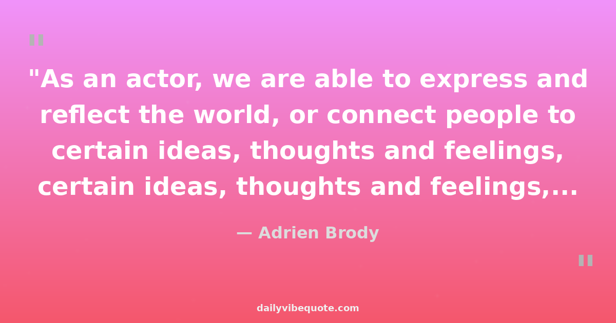 "As an actor, we are able to express and reflect the world, or connect people to certain ideas, thoughts and feelings, whether that's escapism or something that reflects themselves."