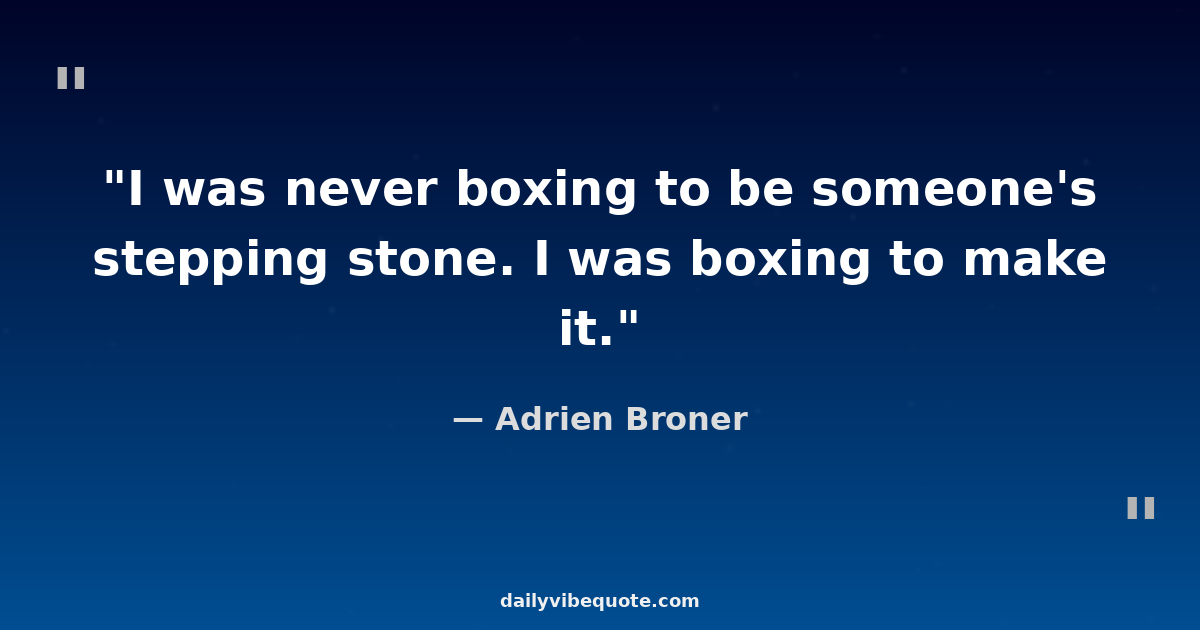 "I was never boxing to be someone's stepping stone. I was boxing to make it."