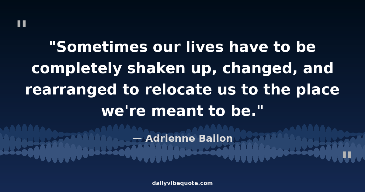 "Sometimes our lives have to be completely shaken up, changed, and rearranged to relocate us to the place we're meant to be."