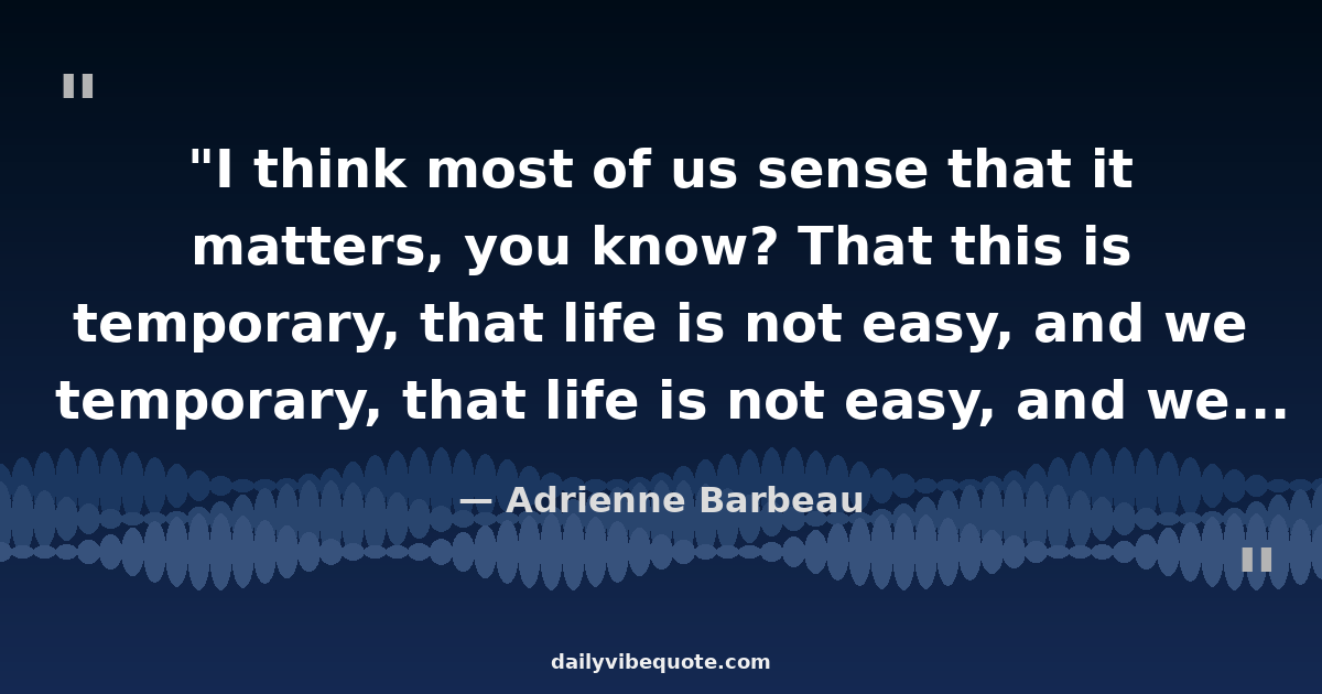 "I think most of us sense that it matters, you know? That this is temporary, that life is not easy, and we better enjoy it to the best of our ability."