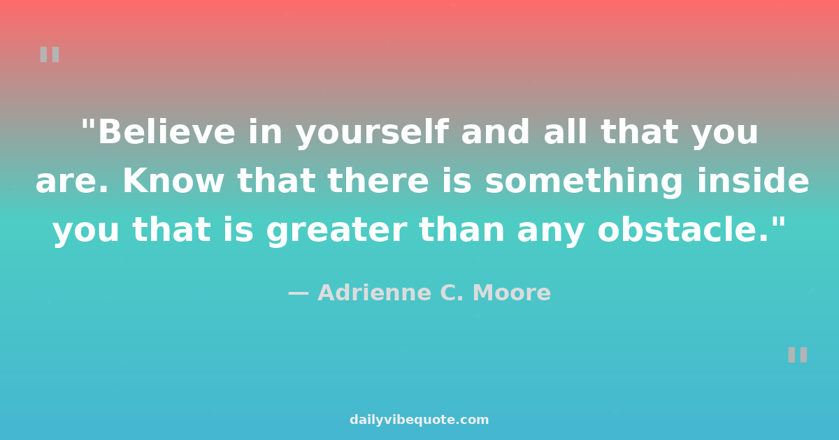 "Believe in yourself and all that you are. Know that there is something inside you that is greater than any obstacle."