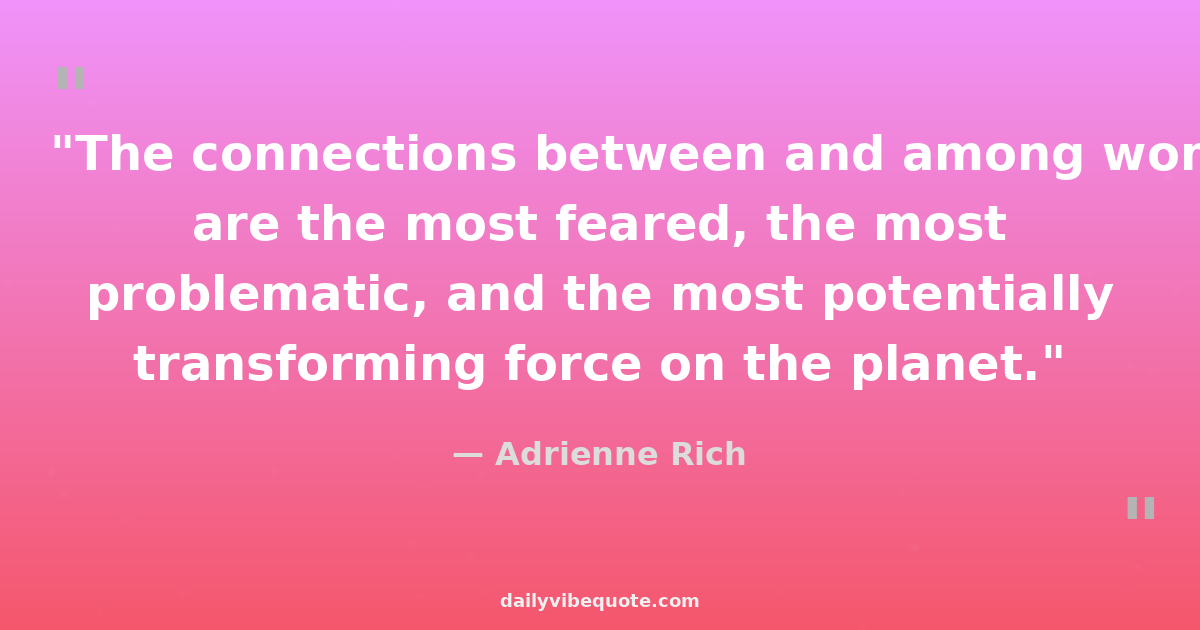 "The connections between and among women are the most feared, the most problematic, and the most potentially transforming force on the planet."