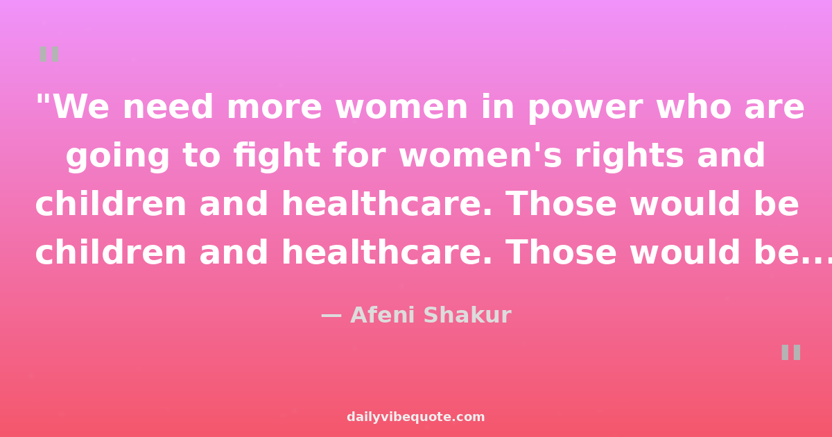 "We need more women in power who are going to fight for women's rights and children and healthcare. Those would be my symptoms and symbols of my presidency."