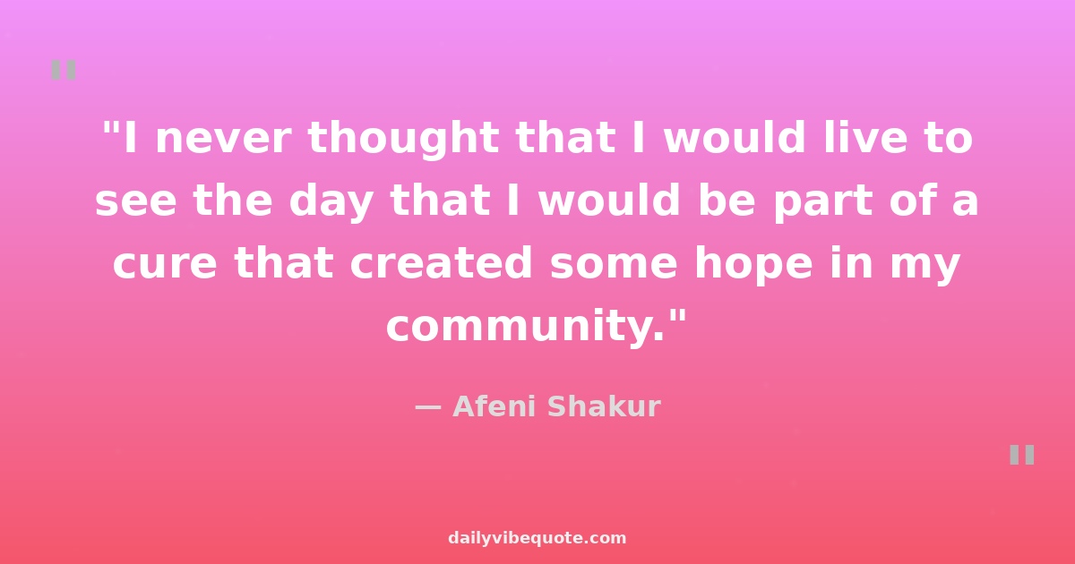 "I never thought that I would live to see the day that I would be part of a cure that created some hope in my community."