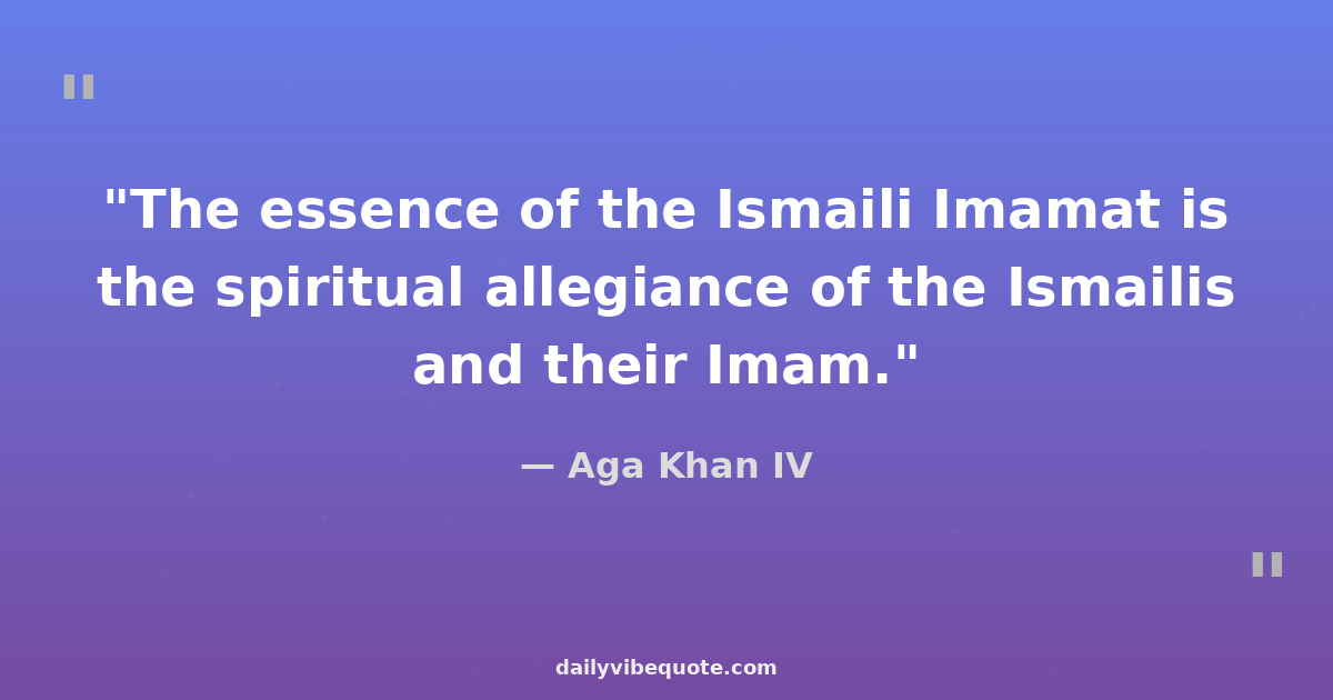 "The essence of the Ismaili Imamat is the spiritual allegiance of the Ismailis and their Imam."