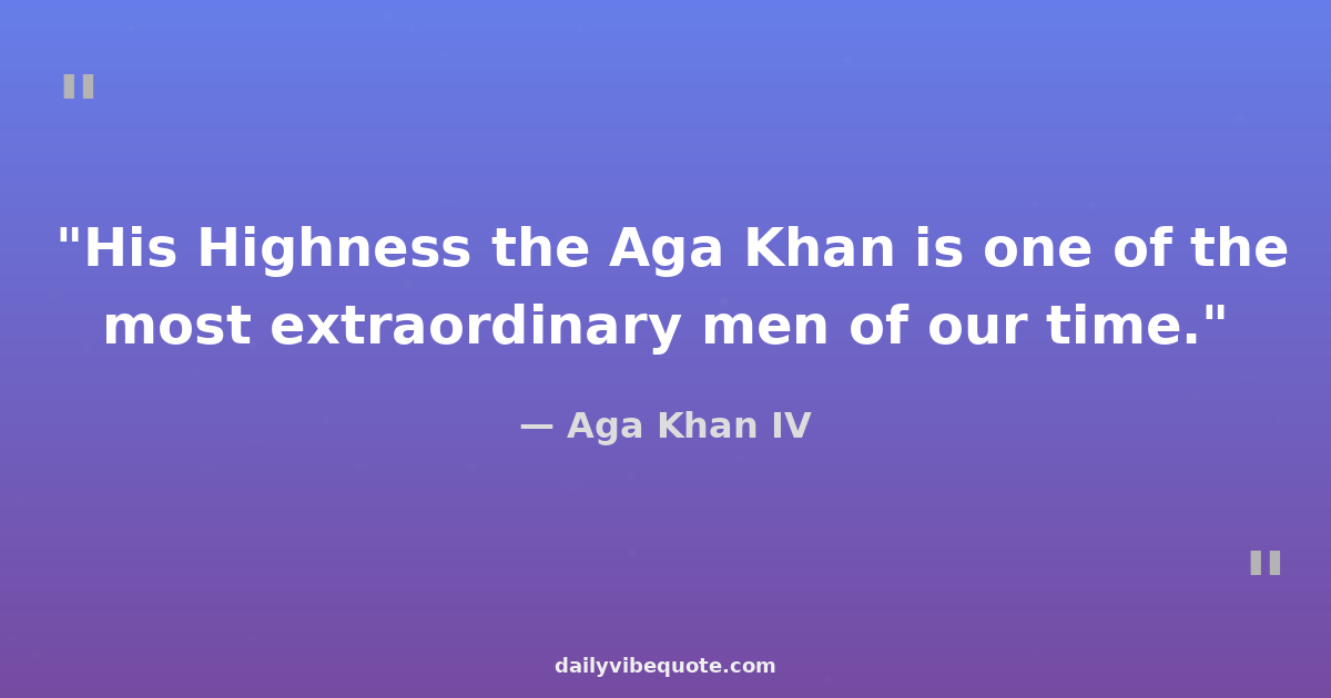 "His Highness the Aga Khan is one of the most extraordinary men of our time."