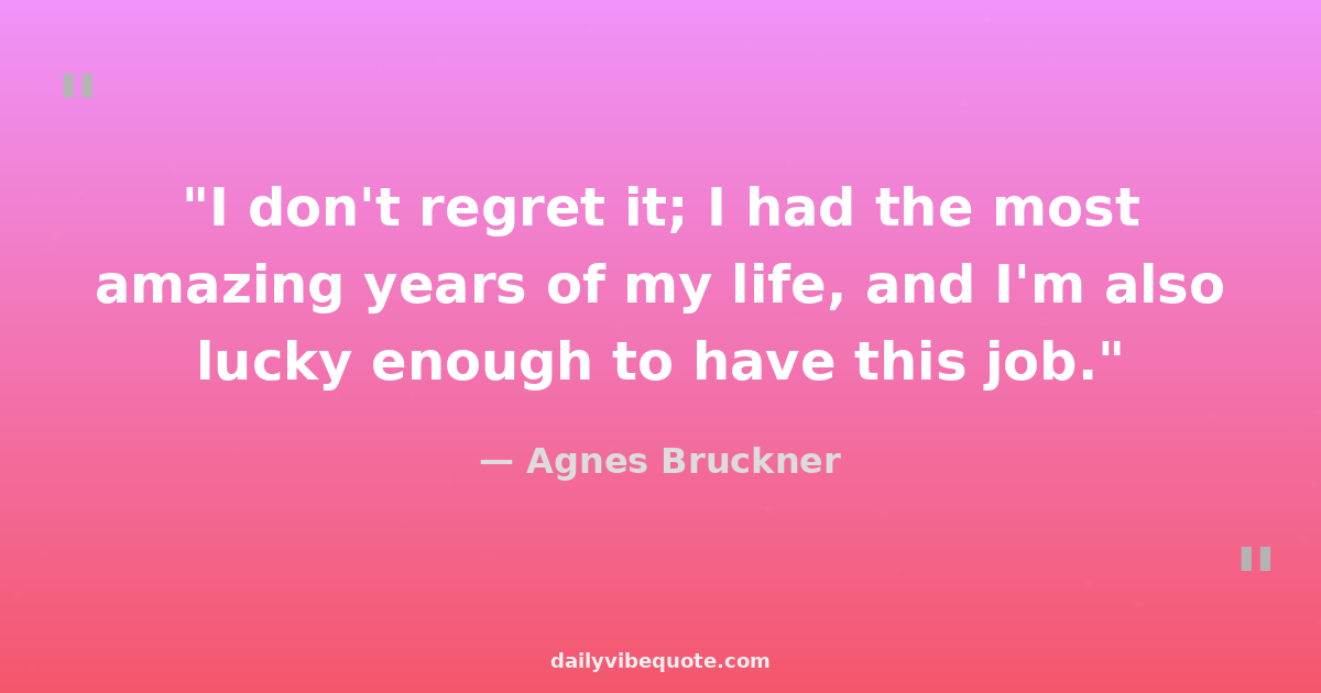 "I don't regret it; I had the most amazing years of my life, and I'm also lucky enough to have this job."