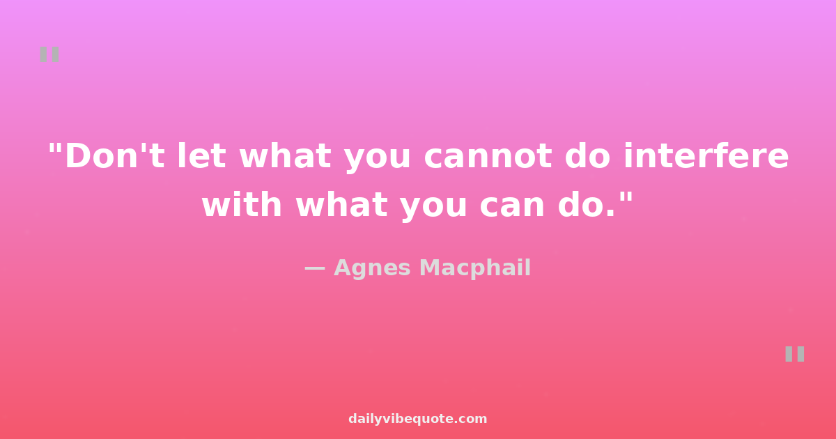 "Don't let what you cannot do interfere with what you can do."